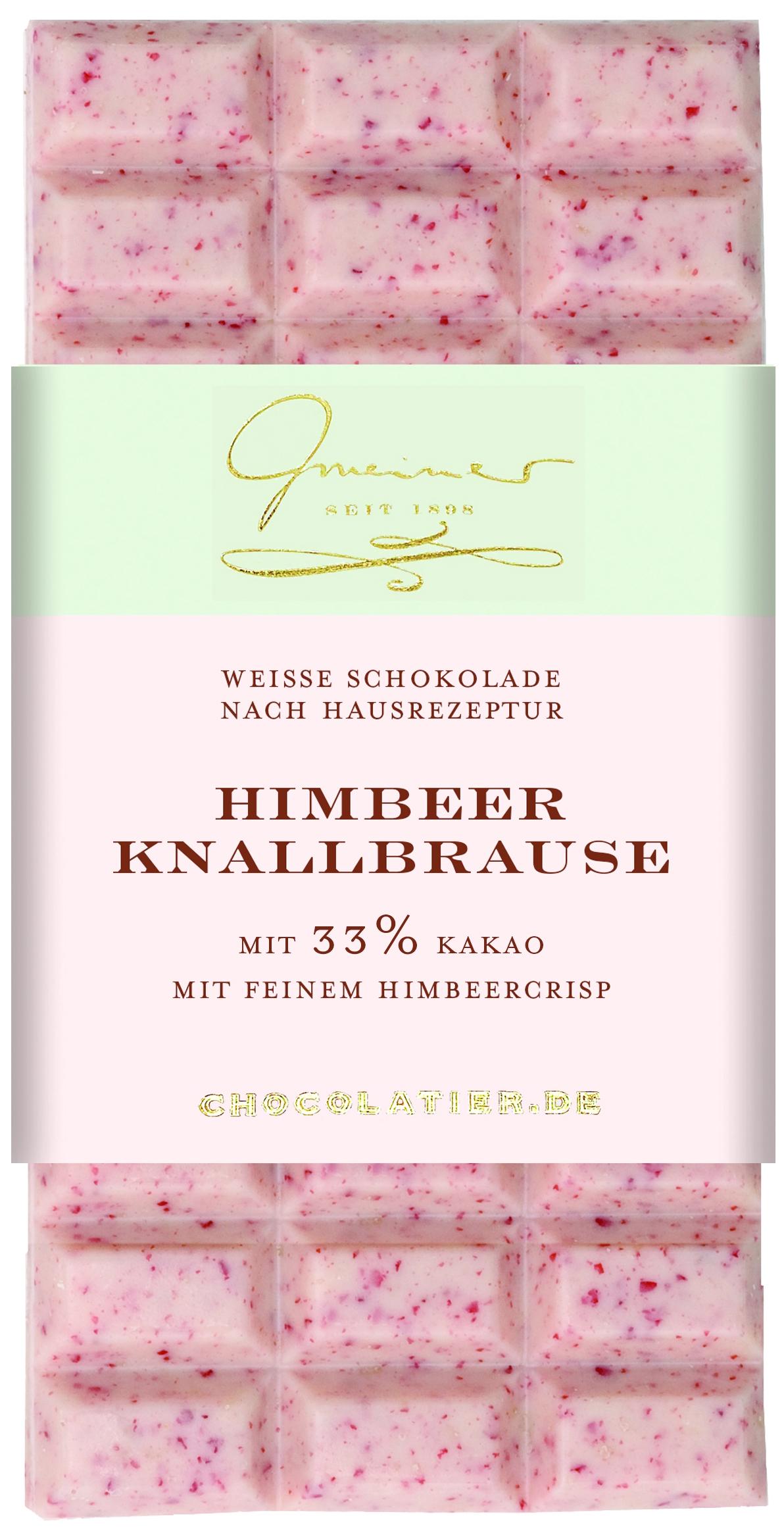 Die „Himbeer Knallbrause"-Tafelschokolade von Gmeiner ist ein köstliches Geschmackserlebnis für alle Liebhaber von süßen und fruchtigen Köstlichkeiten. Die weiße Schokolade wird hier mit feinem Himbeercrisp und aromatischen Himbeeren kombiniert, um ein erfrischendes und zugleich prickelndes Geschmackserlebnis zu kreieren.| Titel | Himbeer Knallbrause Schokolade |