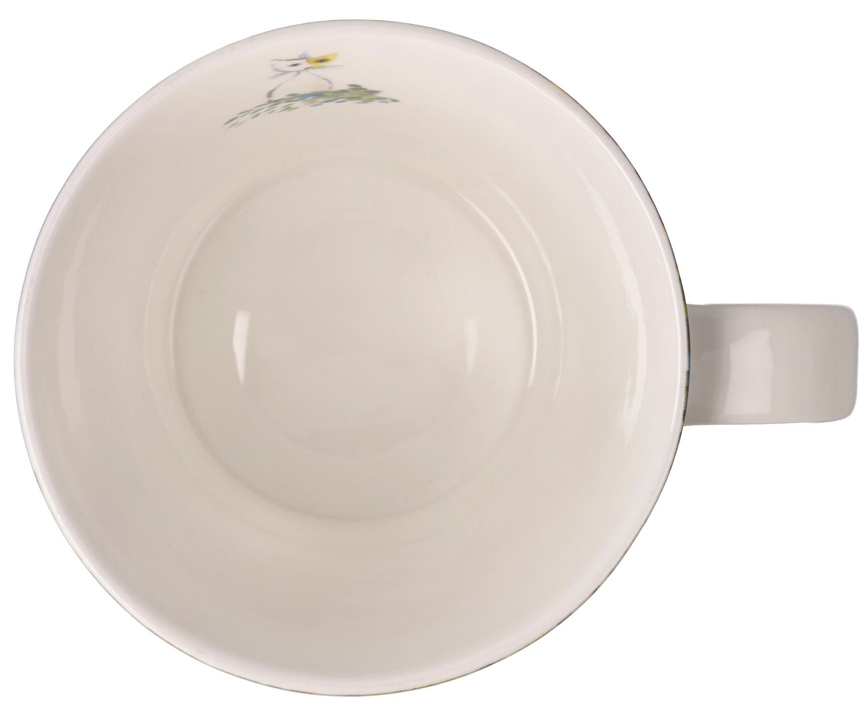 Der Becher hat ein Fassungsvermögen von 350 Millilitern und besteht aus hochwertigem „Fine Bone China"-Porzellan.