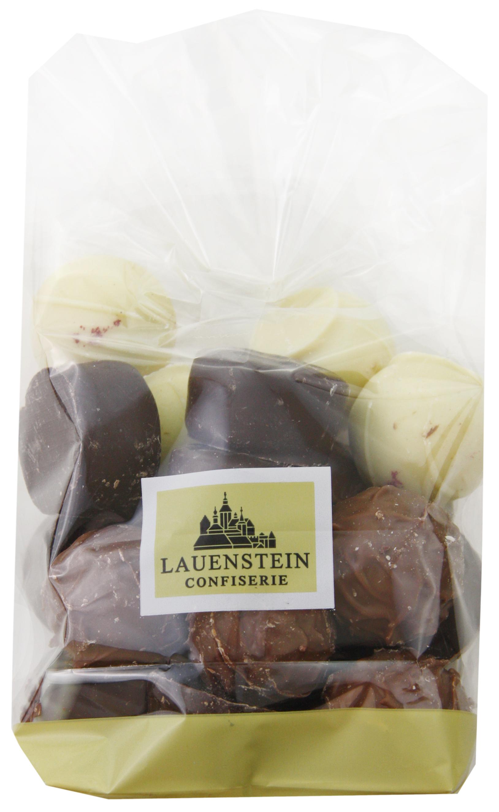 Entdecken Sie handgefertigte, edle Pralinen aus der Confiserie Burg Lauenstein. Der hochwertige Genussbeutel von Lauenstein bietet Ihnen gleich fünf verschiedene Pralinensorten. Perfekt zum selbst Genießen oder Verschenken.