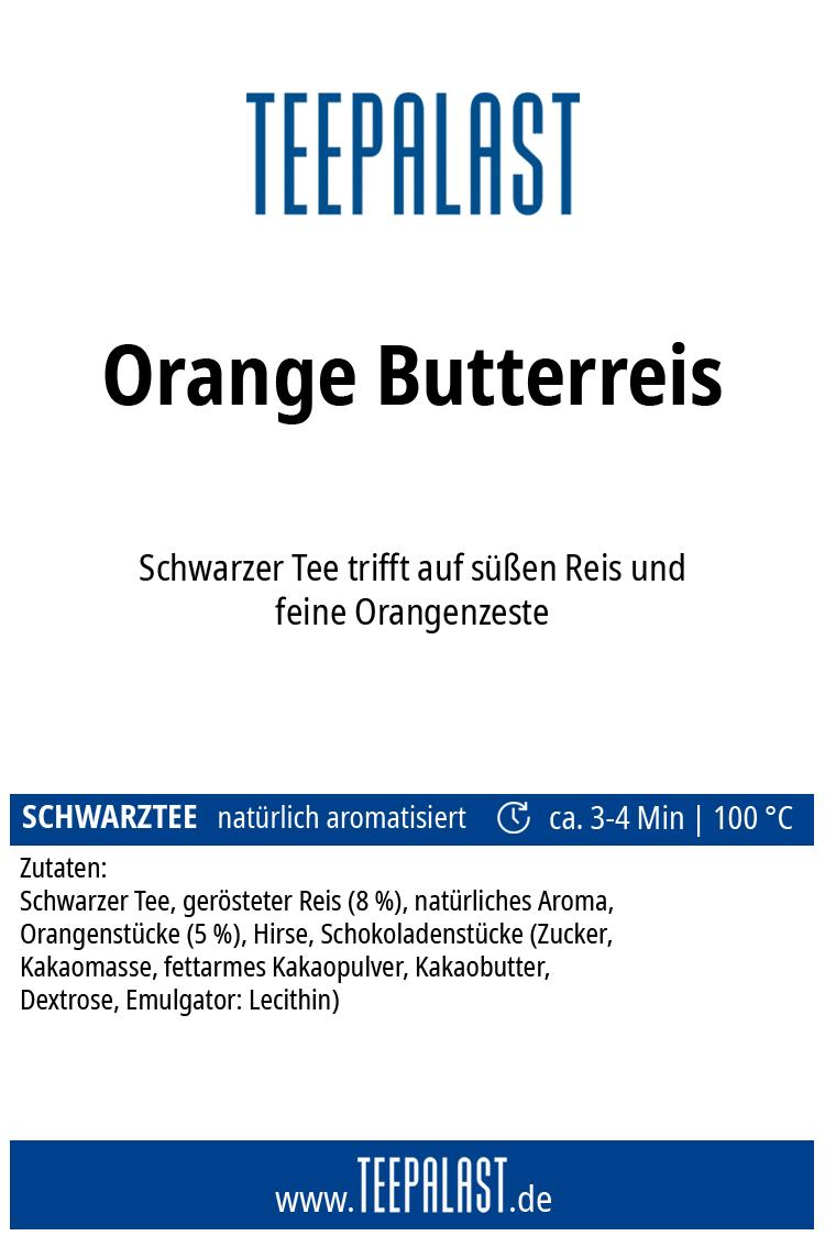| Zutaten | Schwarzer Tee, gerösteter Reis (8 %), natürliches Aroma, Orangenstücke (5 %), Hirse, Schokoladenstücke (Zucker, Kakaomasse, fettarmes Kakaopulver, Kakaobutter, Dextrose, Emulgator: Lecithin). |